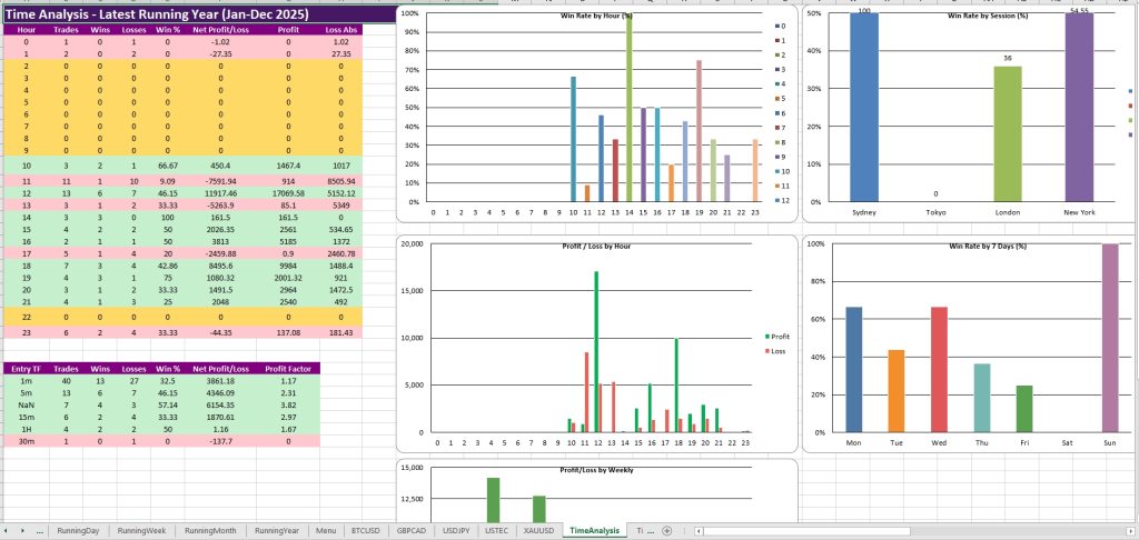 - Session labels (Sydney, Tokyo, London, New York) and Entry Timeframe