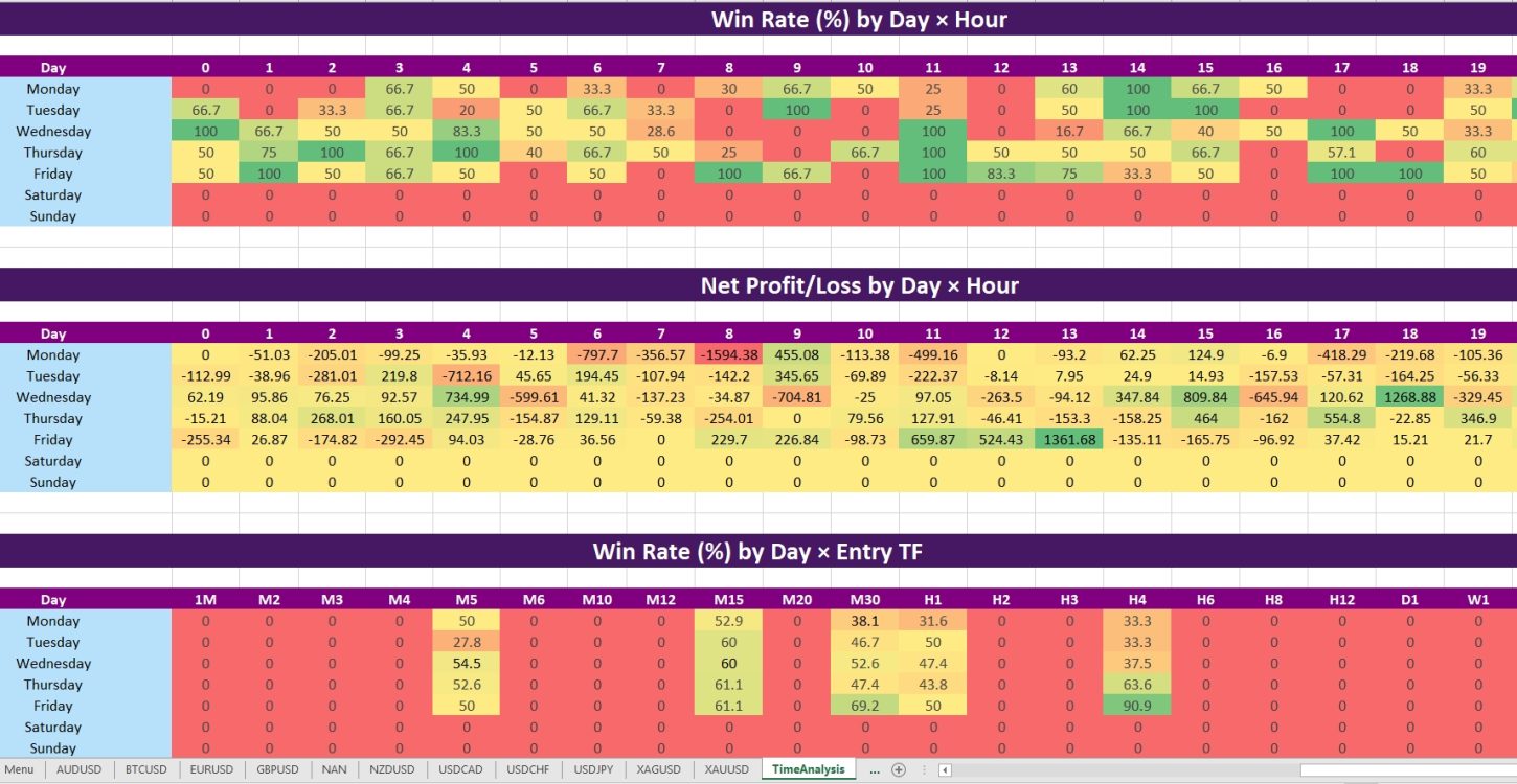 - Powerful filters (symbol, session, weekday, timeframe, direction, period, and more)